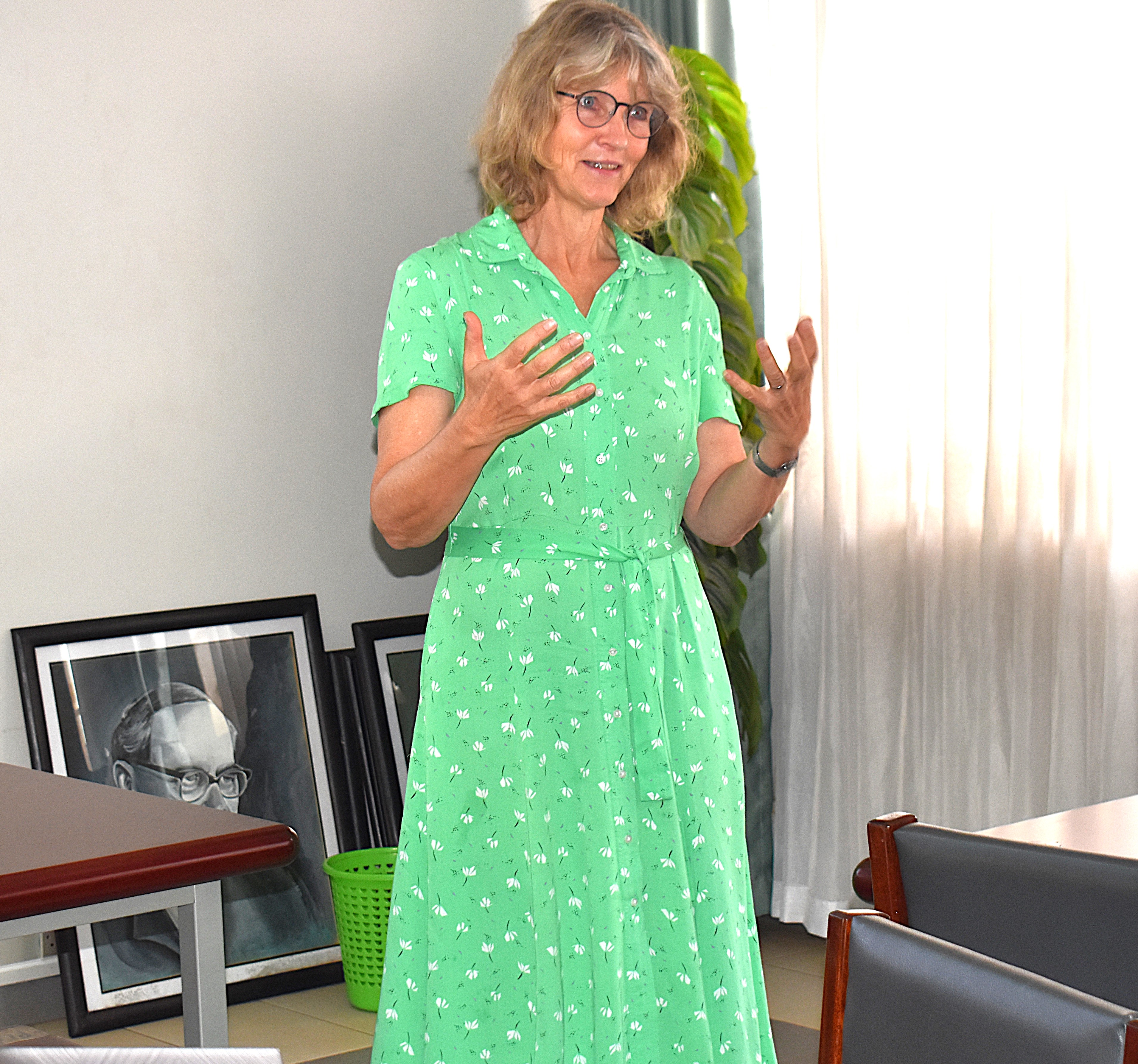 Dr Mildred Ochwo Ssemakula, Prof. John Muyonga, and Dr Robert Mugabi from Makerere University Departments of Crop Science and Horticulture, and Food Technology and Nutrition respectively, briefed the team on their (Departments’) role in the soybean value chain, while Dr Ephraim Nuwamanya from the Makerere University Centre for Soybean Improvement and Development (MAKCSID) shared insights into their ongoing research activities, particularly focused on developing climate-resilient soybean varieties and how these efforts align with the goals of the Healthy Soy Project. The meeting also featured a presentation on the activities of the Child Health Development Centre (CHDC) and its role in the project. Based within the College of Health Sciences at Makerere University, the CHDC will support the training of a full-time PhD fellow who will coordinate and implement a randomized controlled clinical trial (RCT) involving 300 children affected by stunting.