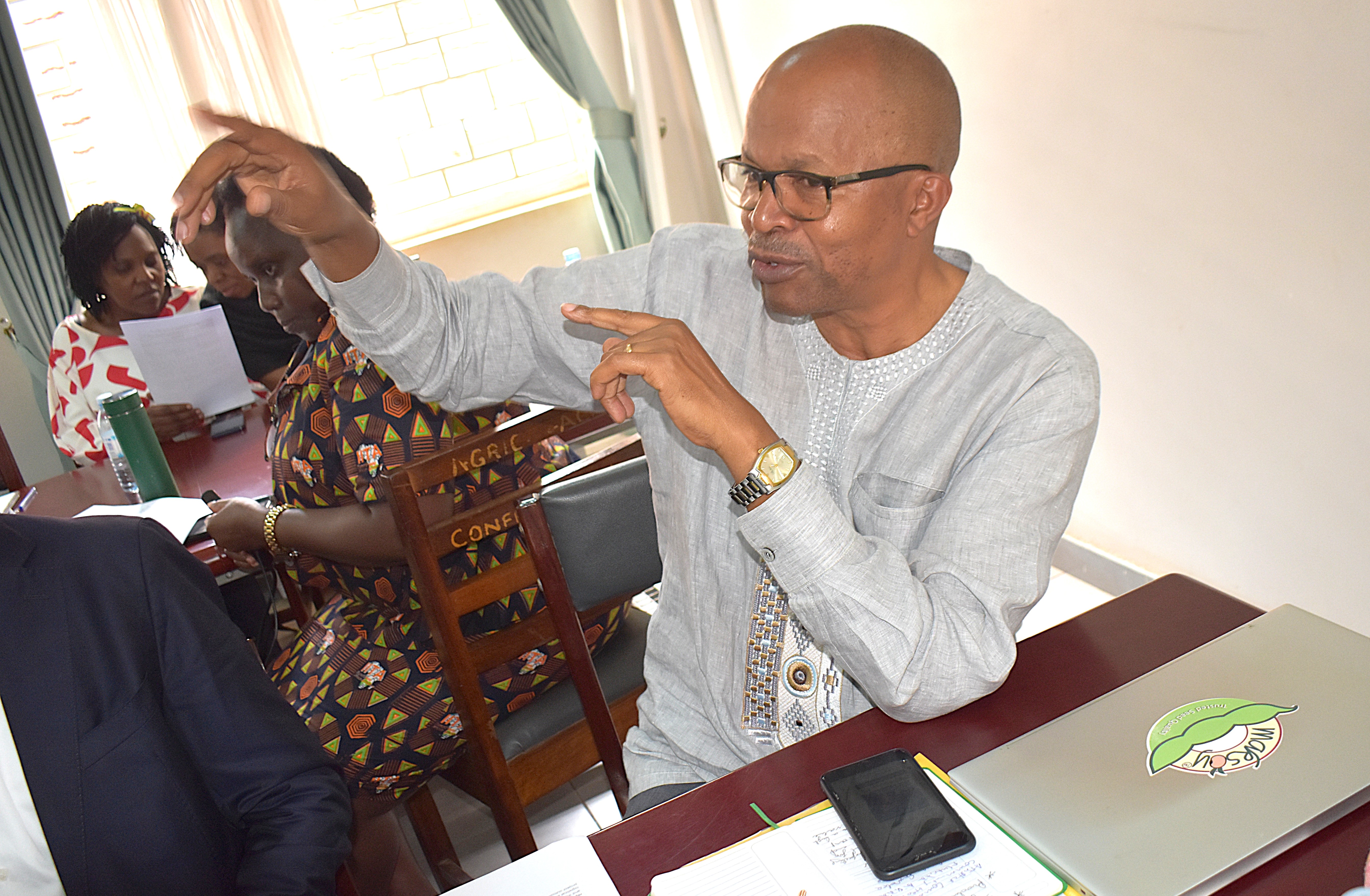 The meeting was moderated by Prof. Phinehas Tukamuhabwa and Dr Jenipher Bisikwa from the Department of Crop Science and Horticulture, College of Agricultural and Environmental Sciences (CAES), Makerere University.
