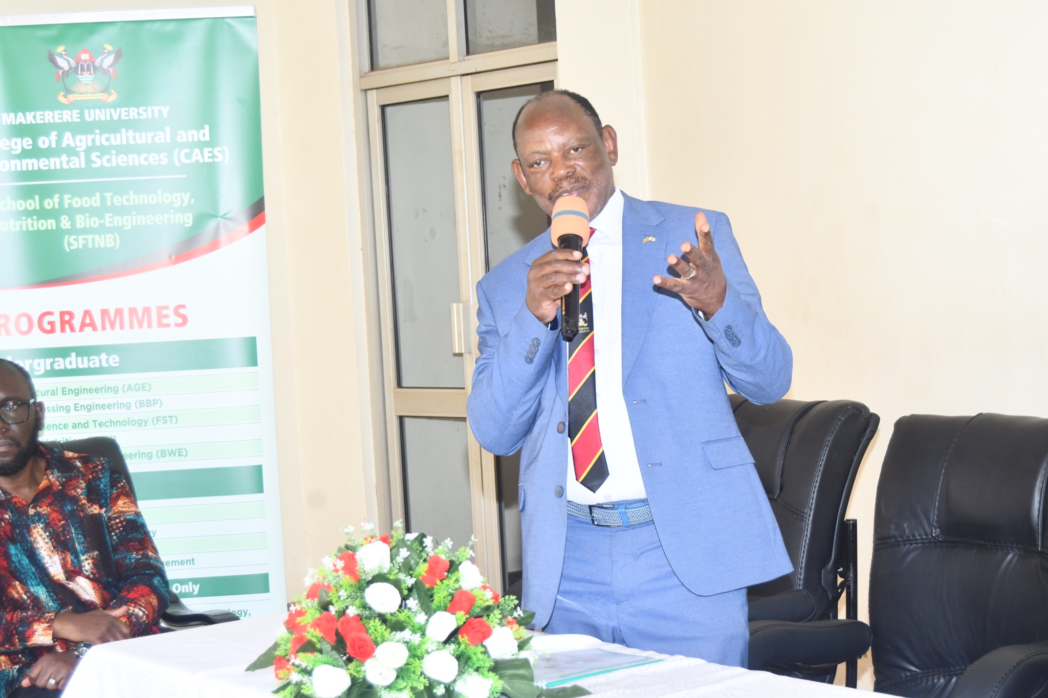 Mr. Gilbert Buregyeya, Programs Lead of the Makerere Innovation and Incubation Centre (MIIC), commended the School of Food Technology, Nutrition and Bioengineering for its commitment to innovation and practical learning. He noted that the partnership between MIIC and the school has been instrumental in redesigning the curriculum to emphasize commercialization and market readiness of student projects. Highlighting ongoing efforts to make the certification process more accessible for young inventors, he revealed discussions with the Uganda National Bureau of Standards (UNBS) aimed at developing flexible, lower-cost certification pathways that allow students to test their products in the market.